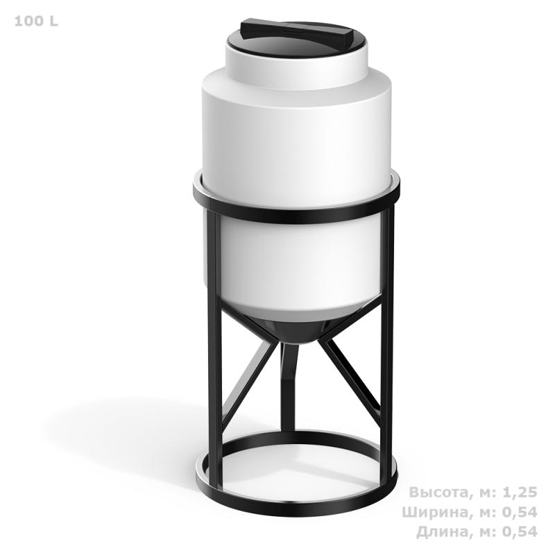Емкость обьёмом 100 литров в готовой специальной обрешётке серии К - отличное решение для пищевых производств, где требуется обеспечить полный слив веществ, хранящихся в таре. Выполнена из прочного пищевого полимера. В емкости конусной К 100 происходит полный слив жидкости благодаря конусной конструкции. Емкость устойчива к воздействию химических веществ и перепадам температур. Имеет компактные размеры и легкий вес для удобной транспортировки. Все элементы обрешетки изготовлены из высококачественных материалов, что гарантирует прочность и жёсткость конструкции, а также улучшает её внешний вид.